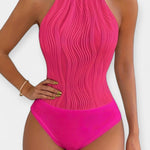 - Premium materiale og pasform: Elastisk stof, der følger kroppen og sikrer en flatterende pasform samt langvarig komfort ved vandet.