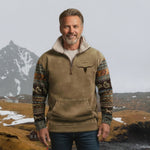 Mathis™ er et tidløst stykke, hvor håndværk møder premium materialer. Trøjen kombinerer blød fleece med varm sherpa-foring, som giver øjeblikkelig komfort på kølige dage. Halv-zip designet og de western-inspirerede mønstre på ærmerne tilfører en diskret, luksuriøs flair til både byliv og rejser, mens den alsidige pasform gør den perfekt til lag-på-lag.