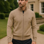 Jacquard™ | Strikcardigan med Lynlås fra Cross & Crown forener tidløs elegance med dokumenteret håndværk. Den komplekse jacquardstrik og den elegante lynlås tilfører sofistikation, mens den ensfarvede overflade udstråler eksklusivitet og alsidig anvendelighed. Fremstillet af en premium stofblanding bestående af 95% bomuld og 5% elastan, giver trøjen blødhed, naturlig åndbarhed og let elasticitet, så den former sig komfortabelt uden at miste sin pasform. Kabel- og ribstrikkens detaljer fremhæver håndværket og skaber en strukturel dybde, der gør kardiganen velegnet til alt fra formelle arrangementer til afslappede hverdagslooks. Med begrænset tilgængelighed og tidløs design står Jacquard™ som en investering i garderobens mest langtidsholdbare element og en ægte samlerkvalitet for den kvalitetsbevidste kunde.