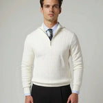 Tobias™ | Zip Trøje med Mønster fra Leviana udmærker sig ved tidløs elegance og håndværk i høj kurs. Den strikkede mønster og den sofistikerede zip-silhuet afspejler omtanke for detaljer og materialer af premium kvalitet. Tobias™ forener klassisk komfort med moderne design og gør sig gældende som et statement i garderoben, passende til en afslappet aften ved pejsen eller en sofistikeret nat i byen. Med begrænset produktion og Levianas arv fremstår trøjen som en langsigtet investering i stil og samlerværdi.