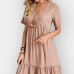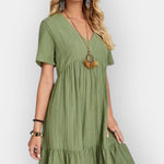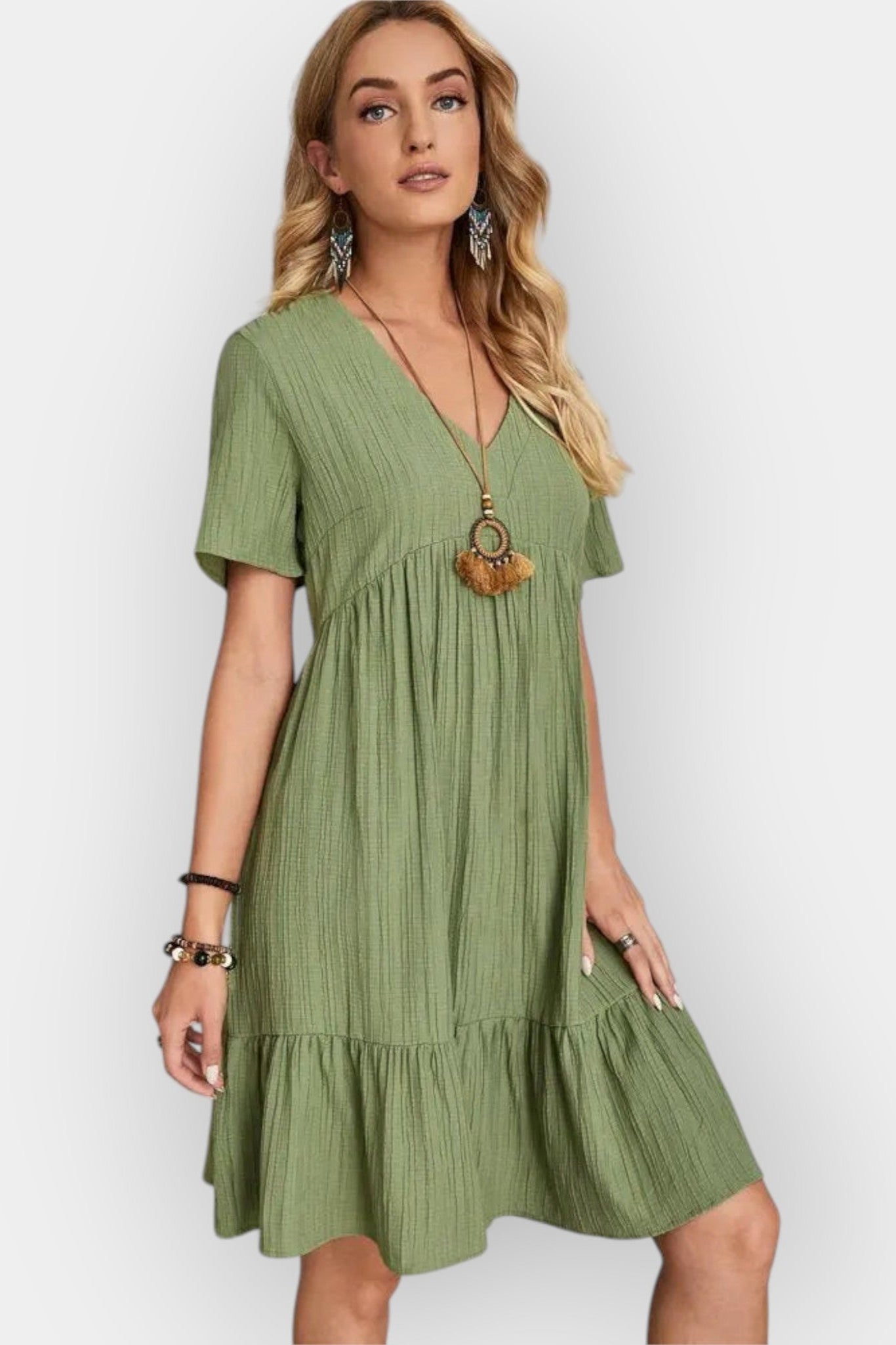 Rikke | V-hals kjole signalerer tidløs elegance gennem et rent, minimalistisk snit og en let, åndbar kvalitet. Kjolen er fremstillet i et let materiale, der sikrer behagelig komfort hele dagen, mens den feminine V-hals fremhæver dekolletagen med subtil sofistikation. Den universelle silhuet flatterer alle kropstyper og giver rig mulighed for personlig styling – fra kontoret til aftensembler. Bag Rikke ligger en omtanke for håndværk og materialer af høj kvalitet samt en forpligtelse til varig stil, der tiltaler samlere af kvalitetsgarderobe. Dette er en investering i en garderobe med lang levetid og tidløs appel.