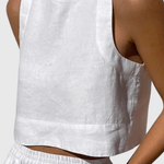 Avelina | Sæt repræsenterer moderne, afslappet elegance i en let bomuld- og hørblanding. Dens rene linjer og draperede fald skaber et tidløst look, der forener stil og komfort. Håndværket kommer til udtryk gennem nøje udvalgte materialer og et minimalistisk snit, der bevarer værdi og relevans over tid. Brug det sammen eller hver for sig og få utallige stylingmuligheder, hvor enkelhed står i centrum. Naturlige fibre giver friskhed og åndbarhed til hverdagen og særlige begivenheder, uden at gå på kompromis med kvaliteten. Denne kombination af naturlige fibre og tidsløs silhuet gør sættet til en investering i garderoben. Et ikon for nutidig æstetik og langsigtet værdi.