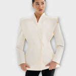 Emilie | Skulder blazer er en tidløs erklæring om håndværk og design. Den sculpturale skulder og de rene linjer udstråler arkitektonisk elegance uden at være prætentiøs, og den tilføjer et strejf af sofistikeret selvtillid til enhver lejlighed. Hver detalje vidner om materialer af udvalgt kvalitet og lang levetid, hvilket giver tidløs værdi og credibilitet i en moderne garderobe. Med begrænsede antal til rådighed giver Emilie en unik position i kollektionen og en tydelig samlerappel, der står imod skiftende trends. Den håndværksmæssige konstruktion står i fokus og kombinerer omtanke med præcision for en helt særlig kvalitet, der varer ved.