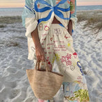 - Håndtegnede motiver af både, strandhuse, palmer og håndskrevne notater giver en unik, tidløs fortælling i hvert look.