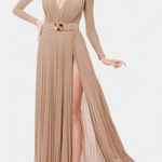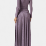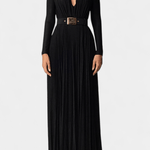 Alma er en langkjole, der forener sensuel tiltrækning med klassisk elegance. Den flydende silhuet og den dybe V-udskæring fremhæver dékolletet med diskret femininitet, mens lange ærmer og et diskret bælte balancerer looket. De flydende plisseringer daler ned som et vandfald og tilfører bevægelse og let luksus ved hvert skridt. Alma fremstilles i begrænset antal af omhyggeligt udvalgte materialer, hvilket signalerer håndværk og provenance. Den tidløse konstruktion lover stil gennem sæsoner og gør Alma til en ægte klassiker i garderoben. Perfekt til galaer, receptioner eller aftener, hvor du ønsker at udstråle selvtillid og uforgængelig elegance.