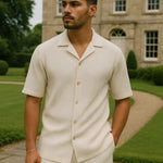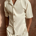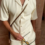 - Design og komfort: Det minimalistiske sæt udnytter rene linjer og en tidløs silhuet; shorts og skjorte tilbyder en behagelig pasform og let bevægelsesfrihed til hverdag og fest.