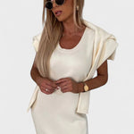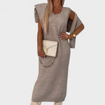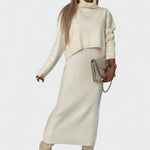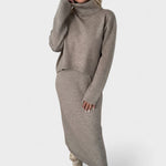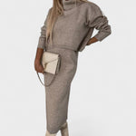 Dette sofistikerede sæt består af en blød midi-kjole og en matchende rullekravebluse – designet til at fremhæve din naturlige skønhed, mens du holder dig varm og stilfuld gennem hele sæsonen.
