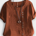 - Tidløs silhuet og klassiske detaljer: Rund hals og diskrete knapper giver en tidløs æstetik, der står stærkt år efter år.