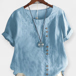 Opdag Tilde | Kortærmet bluse, en signatur af raffinement gennem håndværk og omtanke for oprindelse. Denne ensfarvede bluse med rund hals og diskrete knapper forener tidløs enkelhed med en fin finish, skabt i premium materialer og produceret i begrænset antal for eksklusivitet og samlerværdi. Den åndbare pasform og de korte ærmer sikrer komfort hele dagen, mens den klassiske silhuet og klare farve giver en moderne luksus, der står stærkt i garderoben gennem årene. Tilde er mere end en bluse; den er en varig investering i stil og omtanke.