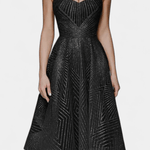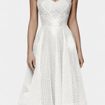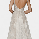 - Håndbroderet mønster der fanger lyset med diskret glans og understreger kjolens eksklusive arv.