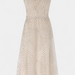 Trine | Broderet kjole repræsenterer en tidløs elegance og en arv af håndværk. Den detaljerede brodering udstråler eksklusivitet, og materialernes kvalitet afspejler en lang tradition for fint håndværk. Den lange, A-linjet snit fremhæver taljen med lethed og skaber en yndefuld bevægelse gennem aftenen. Dette er en investering i tidløs stil, der forbliver en klassiker i garderoben gennem årene. Med sit fokus på håndværk og udvalgte materialer giver Trine en tidløs værdi og en ægte samlerappel. Hver søm og hver broderet detalje afspejler omhu og kvalitet, hvilket gør kjolen ideel til bryllupper, receptioner og galaer, hvor diskret glamour kalder. Tilgængelig i begrænsede partier for at bevare eksklusiviteten.