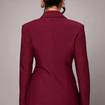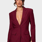 Valentina | Blazer er en sofistikeret opdatering til en velovervejet garderobe. Uden krave i dyb Bordeaux udstråler den moderne elegance, mens det slanke, tidløse snit giver alsidighed til kontor, dagligdag og særlige begivenheder. Håndværket kommer til udtryk i rene linjer, enkelknapslukning og diskrete lommer, og det kvalitetsvævede stof lover komfort og lang levetid. Denne blazer bærer luksusarv i hvert søm og i stofkvaliteten, hvilket skaber en tidløs silhuet og lang levetid. Tilgængelig i begrænset antal for at bevare eksklusiviteten og samlerappel.